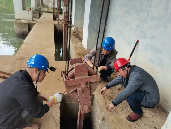 (圖二:運行班組人員對閘門進行檢查并泄洪)